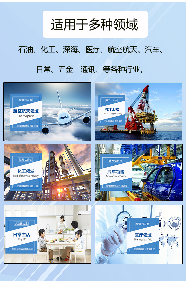寶雞盛輝鈦業有限公司是一家主要從事鈦及鈦合金棒,鈦環,鈦法蘭及鈦合金板材的高新技術企業,公司提供鈦環,鈦合金棒批發,鈦環的生產工藝服務,以人為本,質量取勝為宗旨:18791863990,18740375975