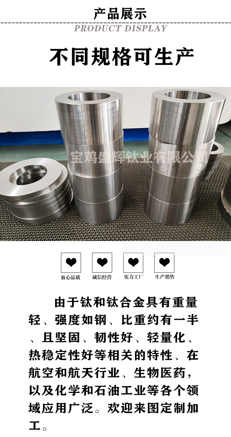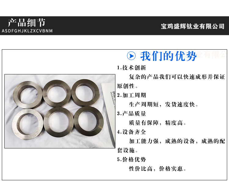 寶雞盛輝鈦業有限公司是一家主要從事鈦及鈦合金棒,鈦環,鈦法蘭及鈦合金板材的高新技術企業,公司提供鈦環,鈦合金棒批發,鈦環的生產工藝服務,以人為本,質量取勝為宗旨:18791863990,18740375975