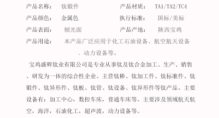 寶雞盛輝鈦業(yè)有限公司主營(yíng)鈦棒,鈦加工件,鈦標(biāo)準(zhǔn)件,鈦鍛件,鈦異