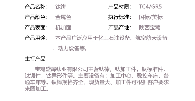 寶雞盛輝鈦業(yè)有限公司主營(yíng)鈦棒,鈦加工件,鈦標(biāo)準(zhǔn)件,鈦鍛件,鈦異