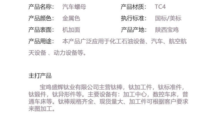 寶雞盛輝鈦業有限公司主營鈦棒,鈦加工件,鈦標準件,鈦鍛件,鈦異