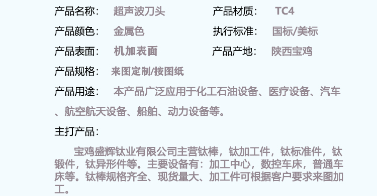 寶雞盛輝鈦業(yè)有限公司主營(yíng)鈦棒,鈦加工件,鈦標(biāo)準(zhǔn)件,鈦鍛件,鈦異