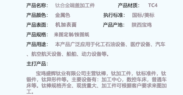 寶雞盛輝鈦業有限公司主營鈦棒,鈦加工件,鈦標準件,鈦鍛件,鈦異