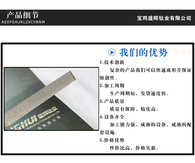 寶雞盛輝鈦業(yè)有限公司是一家主要從事鈦及鈦合金棒,鈦環(huán),鈦法蘭及鈦合金板材的高新技術企業(yè),公司提供鈦環(huán),鈦合金棒批發(fā),鈦環(huán)的生產工藝服務,以人為本,質量取勝為宗旨:18791863990,18740375975