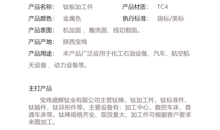 寶雞盛輝鈦業(yè)有限公司主營鈦棒,鈦加工件,鈦標(biāo)準(zhǔn)件,鈦鍛件,鈦異