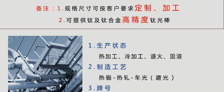 寶雞盛輝鈦業有限公司是一家主要從事鈦及鈦合金棒,鈦環,鈦法蘭及鈦合金板材的高新技術企業,公司提供鈦環,鈦合金棒批發,鈦環的生產工藝服務,以人為本,質量取勝為宗旨:18791863990,18740375975