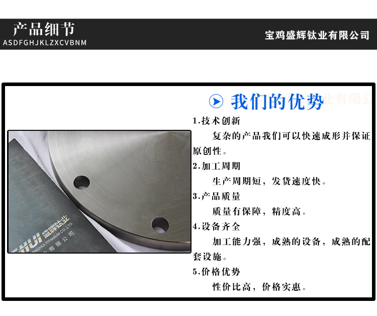 寶雞盛輝鈦業有限公司是一家主要從事鈦及鈦合金棒,鈦環,鈦法蘭及鈦合金板材的高新技術企業,公司提供鈦環,鈦合金棒批發,鈦環的生產工藝服務,以人為本,質量取勝為宗旨:18791863990,18740375975