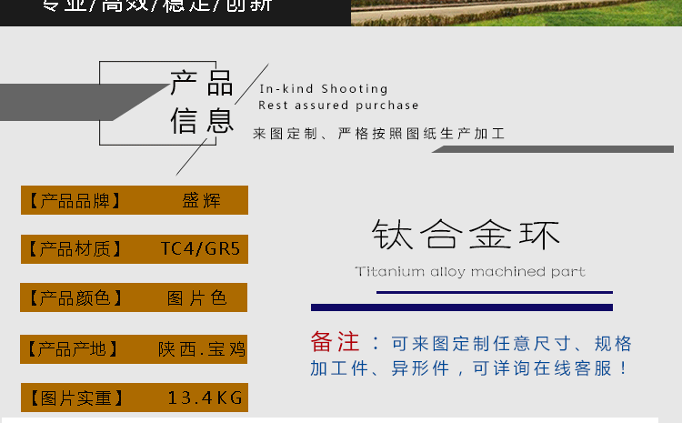 對每一位客戶——我們都詳細地了解和分析不同需要,在提供方案的同時從產品兼容性、可擴展性及技術支持等方面進行充分的考慮,以針對客戶的需要提供優秀的方案。“用戶至上”是我們一貫的宗旨。嚴格而行之有效的售前、售后服務,是寶雞盛輝盛輝鈦業信心的保證。   售前售后電話:18740375975